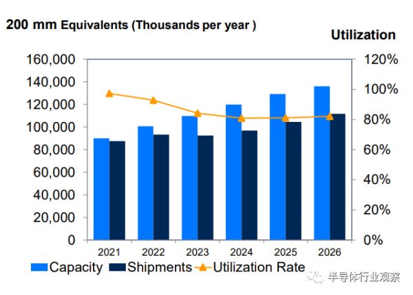 等效200mm晶圆产能及利用率 (图源:Gartner)