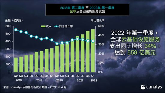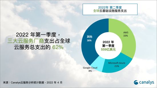 Canalys:全球云服务支出在2022年第一季度攀升至559亿美元