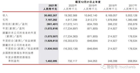 年报显示,京东健康2017年、2018年、2019年、2020年、2021年营收分别为55.53亿元、81.69亿元、108.42亿元、193.82亿元、306.82亿元;毛利分别为13.8亿元、19.79亿元、28.12亿元、49.17亿元、71.97亿元。