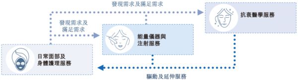 公司营收主要来源于三类服务:日常面部及身体护理服务、能量仪器与注射服务、抗衰医学服务。这三类服务互为延伸,形成消费闭环。