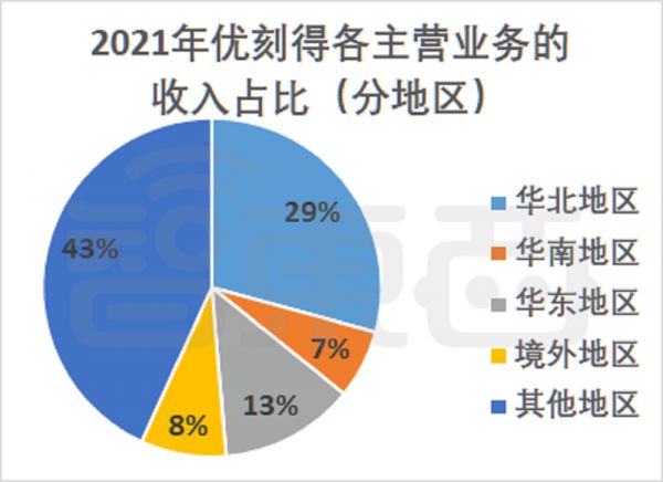▲优刻得2021年各主营业务收入占比情况(按地区分)