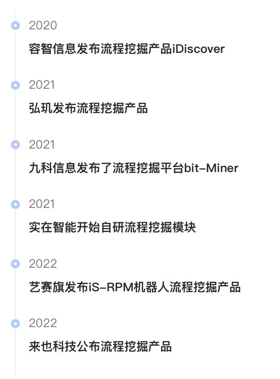 变化早从 2019 年就开始发生,容智、弘玑、九科、实在智能、艺赛旗、来也,这些 RPA 厂商先后启动了流程挖掘业务: