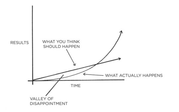 克莱尔在本书中提出的一个有趣术语是潜在的潜力高原(The Plateau of Latent Potential)。还记得我讲过的冰块的例子吗?潜在的潜力高原是 32 华氏度,在这一点上冰会融化。然而,所有在这之前的工作,那些每 1 度的增加,都位于这个潜在的高原之下。这也可以理解为量变决定质变,在某一时点,之前所有的行为似乎都是没有效果的,但一旦积累到那个质变的时点,一切就会开始发生变化。作者解释说,一个人需要用把习惯坚持足够长的时间来突破这个高原,才能看到自己因为习惯而发生的变化。