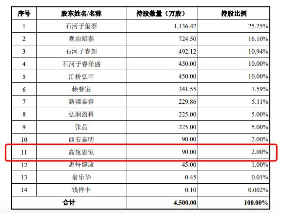 招股书显示,2019年下半年,高瓴资本就开始与普蕊斯接洽投资事宜,最终商定由实际控制人赖春宝分别向高瓴思恒、惠每健康转让发行人45万股股份,由新疆泰睿向高瓴思恒转让发行人45万股股份。