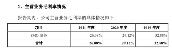 对此,普蕊斯解释称2020年度,公司SMO业务受到国内新冠疫情的影响,毛利率相对下滑较多;2021年度,则是由于疫情导致的成本投入以及人员薪酬的增长,导致公司主营业务毛利率进一步下滑。