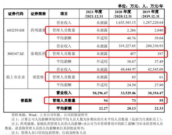 此外,在管理人员数量方面,普蕊斯与诺思格管理人员的员工数量均远低于已具备相当业务规模的药明康德、泰格医药。普蕊斯表示这主要是由于公司尚处于发展阶段,业务体量与业务多样性与复杂性均与药明康德、泰格医药存在较大的差距。