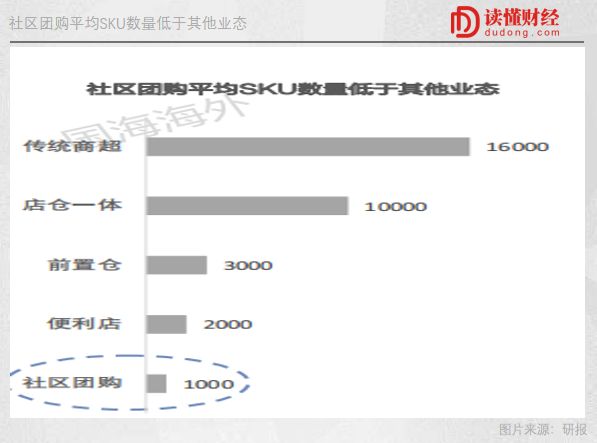 在供给端,社区团购的SKU有限,限制了市场规模的扩大。根据国海证券数据,社区团购SKU数量仅为传统商超的1/16,长期看,其SKU天花板远低于传统商超。