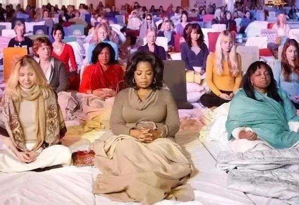 美国著名脱口秀主持人欧普拉·温芙蕾参与冥想活动