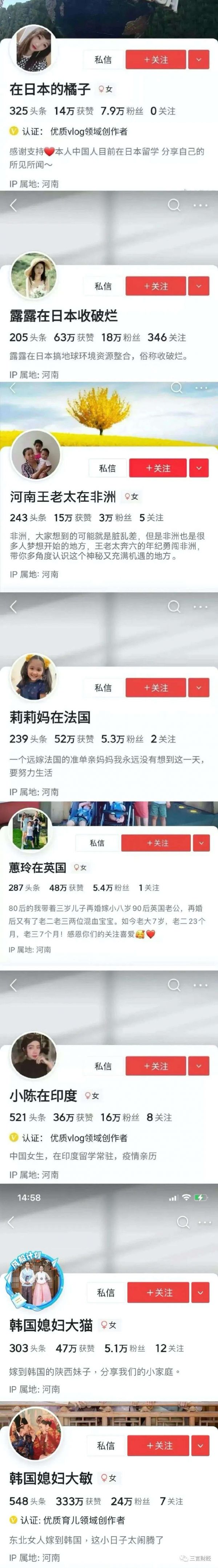 在众多号称在国外的博主中,由于IP属地显示河南的频率较高,网友戏称“海外资讯在河南”。