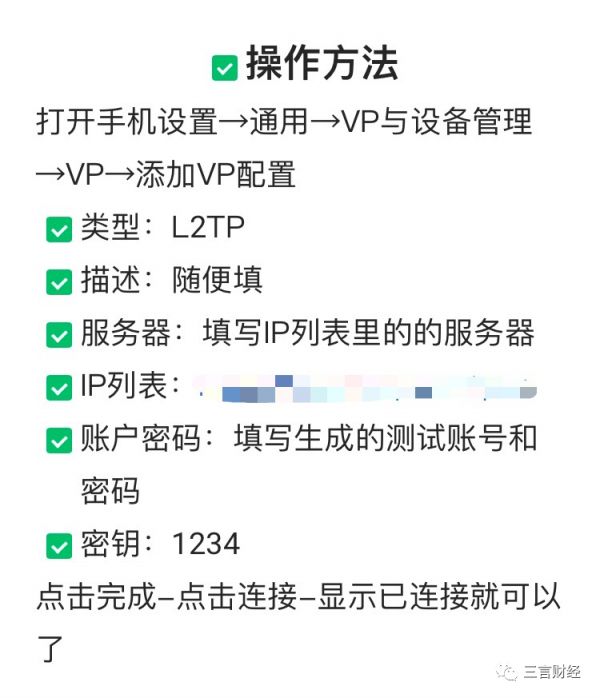三言财经又测试了一款App,其简介描述为“网络加速,静态IP代理”。