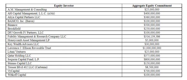 其他出资额最高的投资方包括红杉基金(8亿美元)、沙特基金 VyCapital(7亿美元)、币安(5亿美元)、a16z(4亿美元)。