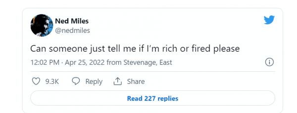 甚至有一位员工直接在自己的 Twitter 账号上写道:谁来告诉我一下,我到底是要赚大钱了,还是要被解雇了?