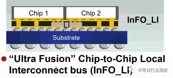 再一个成功的技术,最新款的苹果电脑处理器M1 Ultra所用的先进封装技术UltraFusion,也是两家合作的成果。在上月3D IC和异构集成国际研讨会上,台积电展示的演示文稿中证实,苹果使用的是其InFO_LI 封装方法来构建其M1 Ultra处理器并启用其UltraFusion芯片到芯片互连。InFO_LI在多个裸片下方使用局部硅互连,而不是使用大型且昂贵的中介层,这一概念与英特尔的嵌入式裸片互连桥 (EMIB)非常相似。苹果也是最早使用 InFO_LI 技术的公司之一。