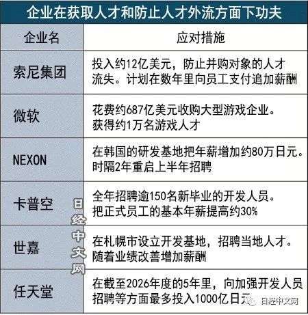 日本的游戏企业也在推进改善开发人员的待遇和争夺人才。