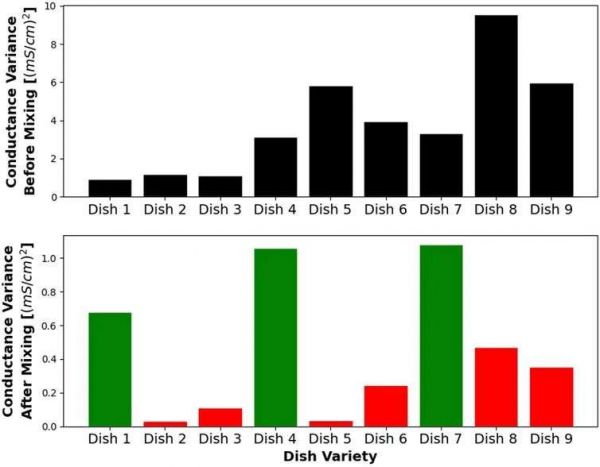 实验过程中,混合过程是无法控制每道菜都完全相同的,因此,研究人员在实验过程中会让机器人对每道菜品尝3次,但研究人员只使用第一次和最后一次品尝进行分类,以提高实验的可重复性。