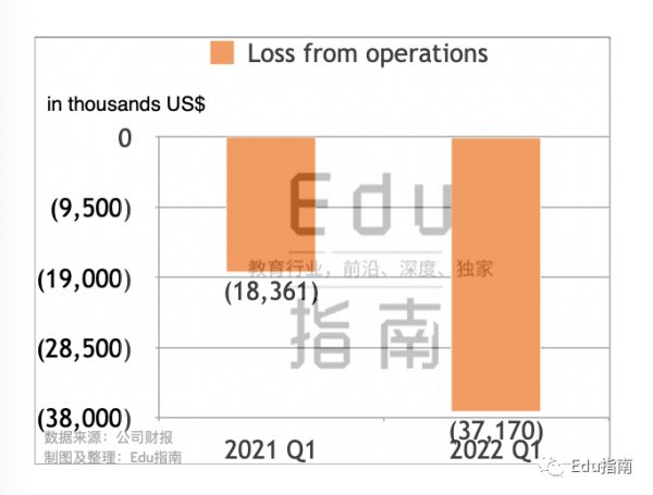 本季度表现为经营亏损3717万美元,同比去年同期的1836万美元,亏损扩大102%。