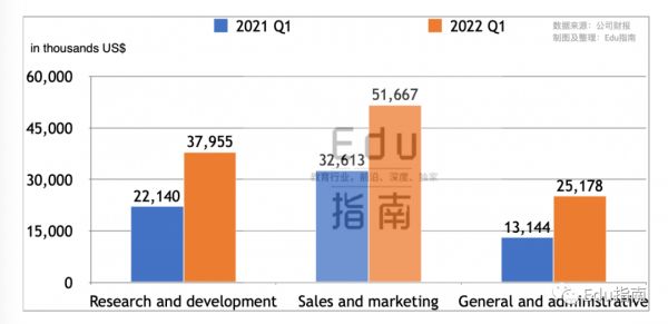 本季度Coursera总毛利为7763万美元,同比去年同期的4954万美元,提升57%。收入成本为4280万美元,同比增加10%。