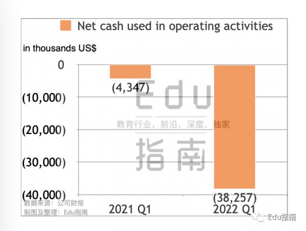 季度经营现金流净流出3826万美元,而2021财年Q1经营现金流净流出为435万美元。