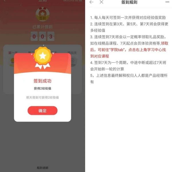 例如都是产品经理APP的7天签到活动,用户可以通过打卡赢得礼品奖励,可以使用户慢慢形成使用产品的习惯。