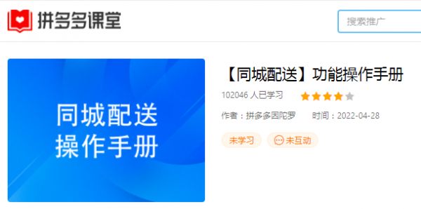 在农业和直播电商领域尚未掀起水花的拼多多,近日开始涉足即时零售,卷入“万物到家”的新战场。雪豹财经社了解到,4月28日,拼多多课堂上线同城配送功能操作手册,辅导有意愿的商家入驻。