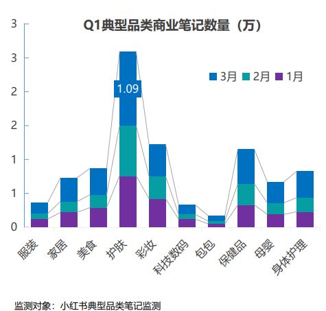 从艺恩星数《Q1小红书典型品类商业笔记》的监测数据来看,小红书是当之无愧的护肤与彩妆领域“种草沃土”,2022年第一季度护肤类的营销投放数量远超其他品类。