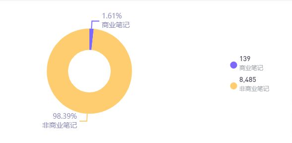 通过对4月投放费用位于前十位的美妆品牌的相关笔记及达人属性分析,兰蔻、雅诗兰黛、阿玛尼、圣罗兰、魅可的普通用户笔记分享数占比均超过总笔记量的50%。其中,圣罗兰YSL相关达人属性为普通用户的比例高达59.9%,非商业笔记的比例高达98.39%。