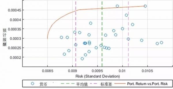 图5 货币的效率界限图。 投资参与图表左侧的货币风险较小。