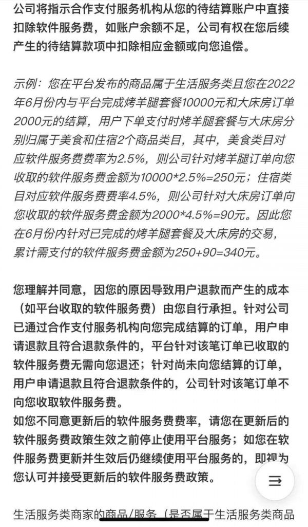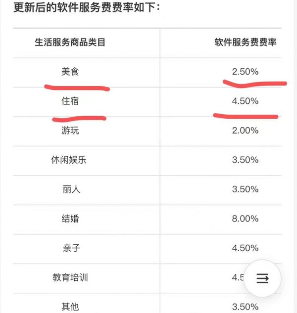 其中,住宿软件服务费率上调至4.5%,美食、游玩和休闲娱乐分别上调至2.5%、2.0%和3.5%。而《政策》内指出,2022年6月1日之前,用户支付的订单,软件服务费率仍按0.6%执行。