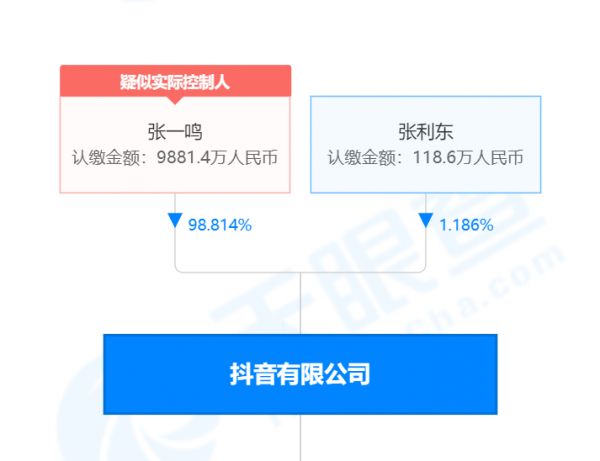 根据天眼查显示,张一鸣掌握改名后的国内实体-抖音有限公司98%以上的股份。而抖音集团(香港)有限公司,成立于2012-05-08,负责人为YIMING ZHANG,也就是张一鸣,这家公司也是北京字跳网络技术有限公司,天津字节跳动科技有限公司等多家公司的大股东。但香港这家实体的股东结构不详。