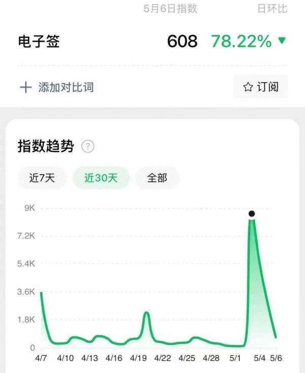 微信指数显示,四五月电子签搜索量增长快速;