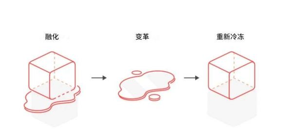 卢因变革管理模型用冰块来比喻组织。就像你想改变冰块的形状,就需要先融化再重新冷冻一样,你的组织也必须经历这样一个“解冻-变革-重新冷冻”的过程: