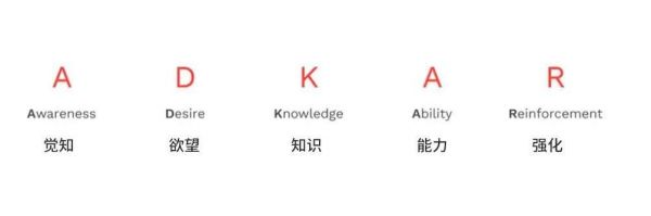 ADKAR(觉知、欲望、知识、能力和强化)模型是一个 旨在评估、测量和准备在组织变革的过程中,个体的变化过程的模型。作为Prosci变革管理框架的一个组成部分,它已经成研究个体变革体验的常用缩写。