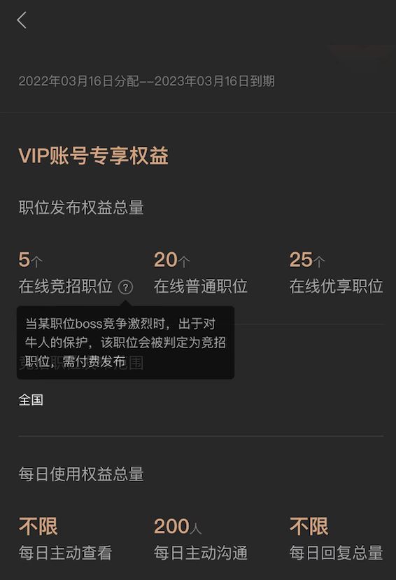 “开通年卡会员,并不意味能享受VIP般尊贵体验。” 李云为公司开通的BOSS直聘年卡会员套餐费用为1万余元,表面看套餐包括50个职位发布权益,但细究发现权益分为5个在线竞招职位,20个在线普通职位、25个在线优享职位等不同级别的权益。