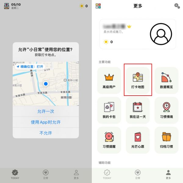 笔者一直很喜欢用一款日常习惯打卡的APP“小日常”,最近的一次更新添加了“打卡地图”的功能,需要获取手机的位置权限,被我果断拒绝。