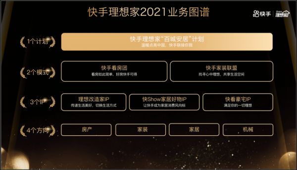 另一方面,“快手理想家”通过三年的积累也形成一个了小有名气的住房家居品牌,不仅同步在线下组织看房团引流,甚至走入家居版块,为老铁们提供现在线看房、买房、装修等一站式服务。
