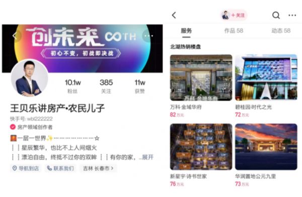 事实上,在快手平台上类似王贝乐这样的房产主播还有很多,他们大多均是从房地产经纪转型而来, 但也并非所有人都有如王贝乐这样的好运气。