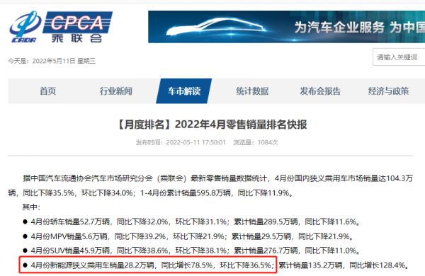 「缺芯」困境也扼住了多家车企的脖子,直接影响了销售和交付。乘联会在5月10日发布的数据显示,4月国内新能源乘用车零售销量为28.2万辆,环比下降36.5%。