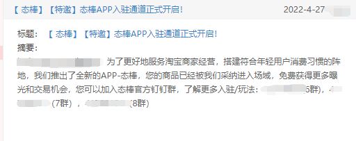 在自家店铺商品自动被搬运到态棒平台的两周之后,潮牌女装创始人赵茜终于在淘宝后台收到了的入驻态棒的正式“特邀”。而邀请信息中,“免费获得更多曝光和交易机会”一句话,无疑成了直击她的痛点,和最吸引同行们的利益点。