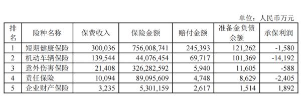 但上述前五大商业保险险种却基本上处于承保亏损中。以2021年为例,国元农险的短期健康保险承保亏损0.16亿元、机动车辆保险亏损1.42亿元、意外伤害保险亏损0.06亿元、责任保险亏损0.24亿元、企业财产保险亏损0.19亿元。