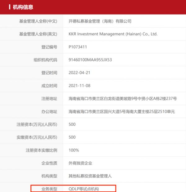 海南在去年5月出台了QDLP试点工作暂行办法,并在同年8月公布了首批试点名单,KKR就名列其中,开德私募便在此后成立。
