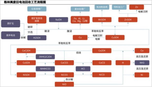 首先是绝对绕不开的格林美,作为国内电池回收的绝对龙头,其从2003年开始便启动了废旧电池回收业务,历时17年投资建设废旧电池与钴镍钨锗铟等稀有金属废物完整回收,到目前已经建成中国最大超细钴镍粉末制造基地,中国核心锂离子动力电池钴镍原料制造基地。