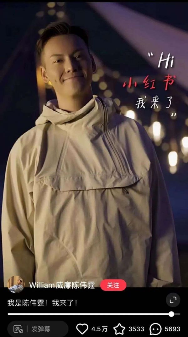 4月24日,@William威廉陈伟霆 发布了一条露营vlog,正式宣告入驻小红书。视频中,无论是他亲手搭帐篷的场景,还是他与宠物狗在露营场地的互动,都唤起了不少人对露营这一活动的向往,该条笔记的点赞量达到4.5W。截至目前,他的账号共发布了五篇笔记,其中三篇都与露营有关。