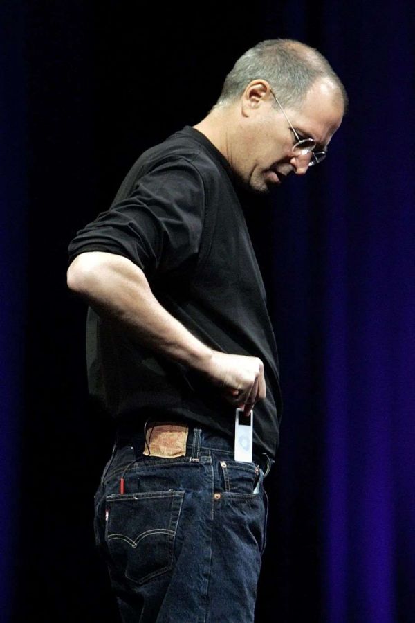 过程中也有过一些,有趣的高光时刻。2005 年,乔布斯发布第一代 iPod nano 时,为了体现它有多小,把它装进了牛仔裤口袋上方的「小口袋」里。