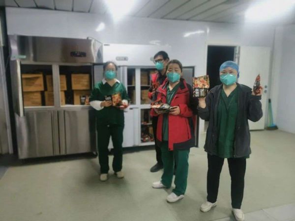 考虑到“急食”需求场景,团队还联合康师傅将上千份产品与微波炉、冷冻柜一起送给浦东方舱的医务工作者。