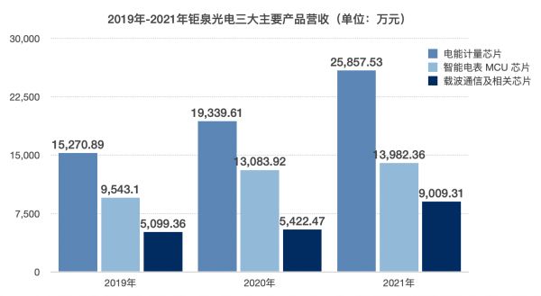 2019年-2021年钜泉光电三大主要产品营收(数据来源:IPO招股书)