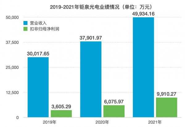 2019-2021年钜泉光电业绩情况(数据来源:IPO招股书)
