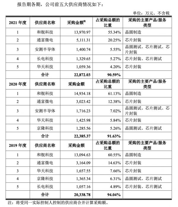 报告期内,钜泉光电的晶圆采购全部集中于和舰科技及其母公司联华电子,报告期内对其采购占比达60.55%、61.13%、55.34%,产品生产存在着较大依赖。尤其在近年疫情下,半导体行业上游产能供给紧缺的局势仍难以缓解,采购价格也在上逐渐上涨,这将对钜泉光电的成品芯片备货和成本来带一定压力。