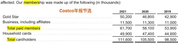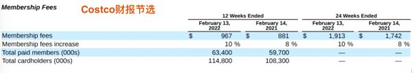 反观开市客,其壁垒和黏性可以说相当高。2019-2021三年里似乎没有受到疫情影响,会员数一直在平稳增加。据季报,截至今年2月13日的一个季度里会员费收入(为其最核心营收点)同比增长了10%,相应的会员数同比增加6%,环比增加1%。增长因素主要是新会员的加入、升级为高级会员,以及续费率提升,当季其北美和全球市场的续费率分别是92%和89%。
