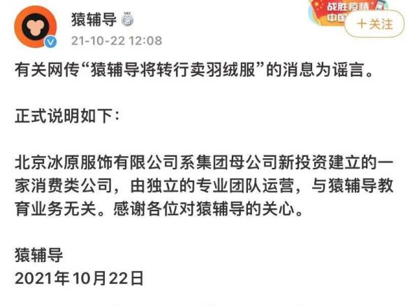 事实上,猿辅导进入羽绒服赛道,有着自己的心思。