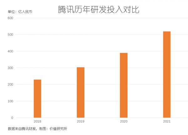 数据显示,2021财年腾讯研发投入达到18亿元,同比增长33%。拆分到各个季度,研发支出的同比增速都在30%以上,整体投入较2018年接近翻倍。此外,腾讯研发团队规模也是不断扩大,截止去年年底研发人员总数同比增长41%,新增研发项目6000+,较2020年增加51%。